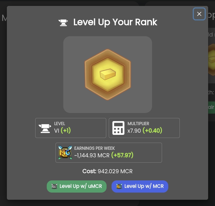 Este se trata de un mecanismo innovador que permite a los usuarios mejorar sus rangos NFT depositando nuestro token $MCR.